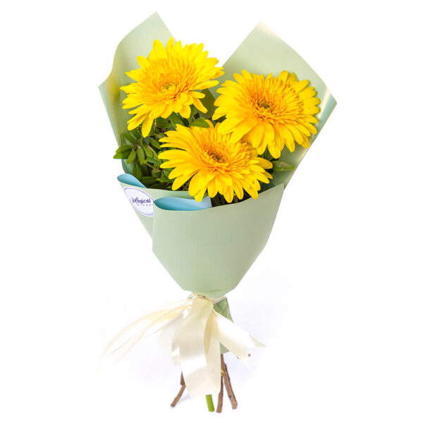 Букет из гербер и зелени. Подарит позитивное яркое солнечное настроение в любую погоду.