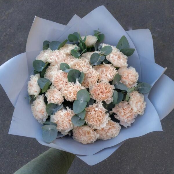 Состав: диантусы — 29шт, эвкалипт, оформление.
