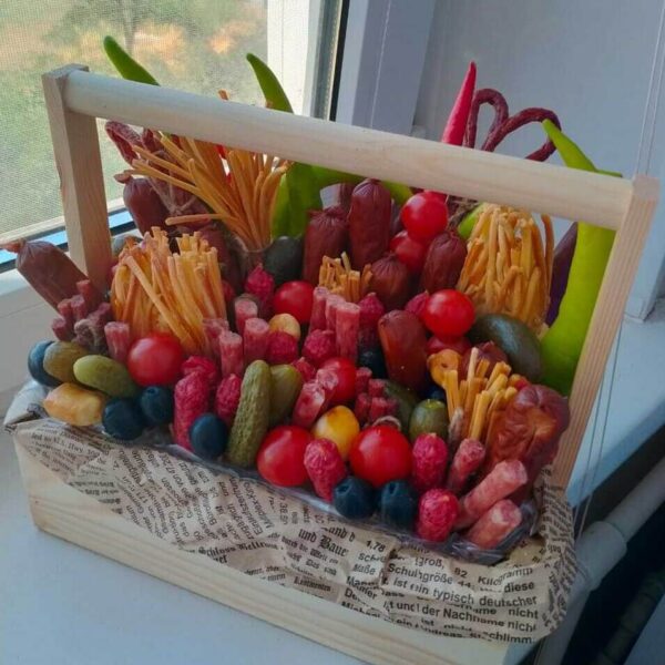 перец Чили 3 вида колбас помидорки черри сыр «косичка» крекеры зелень Общий вес ~ 1 кг Любой подарок можно дополнить