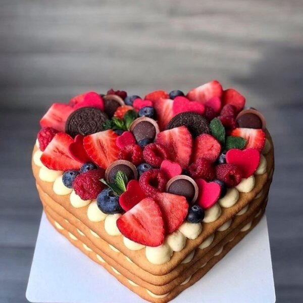 Легкий, вкусный и стильный торт! Нежные медовые коржи  Нежный крем-чиз Ягодное конфи Сладкие украшения Вес: от 1,3кг в зависимости от