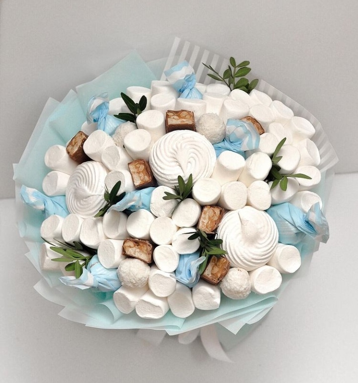 Состав: зефир, маршмэллоу, конфеты, декор.